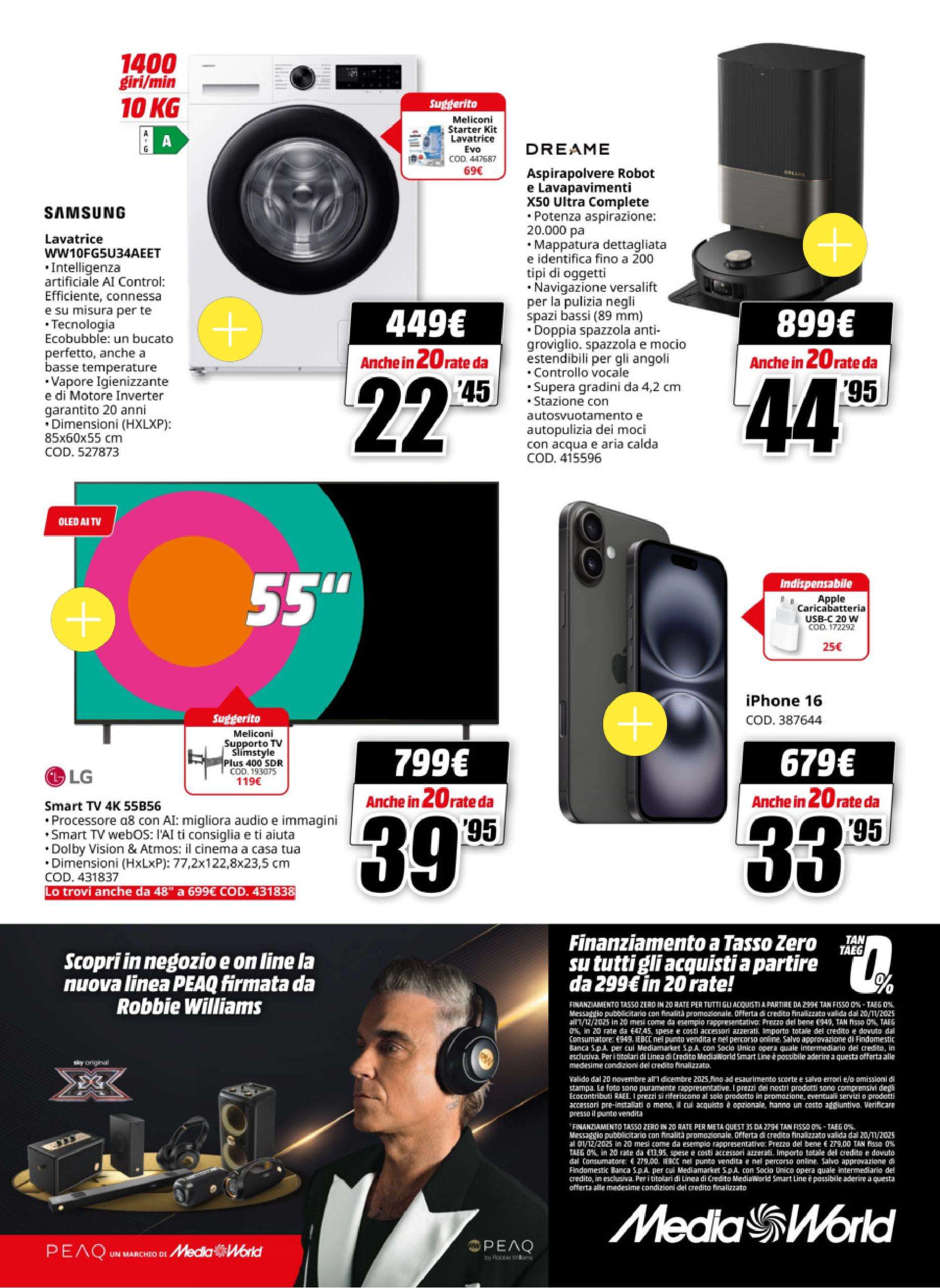 Nuovo volantino MediaWorld dedicato al Black Friday, valido dal 20 novembre al 1° dicembre: un’ondata di sconti che anticipa lo shopping natalizio e rende più conveniente ogni acquisto tech. Segnaliamo inoltre la possibilità di ottenere finanziamento a tasso zero su tutti gli acquisti da 299 euro, in 20 rate.