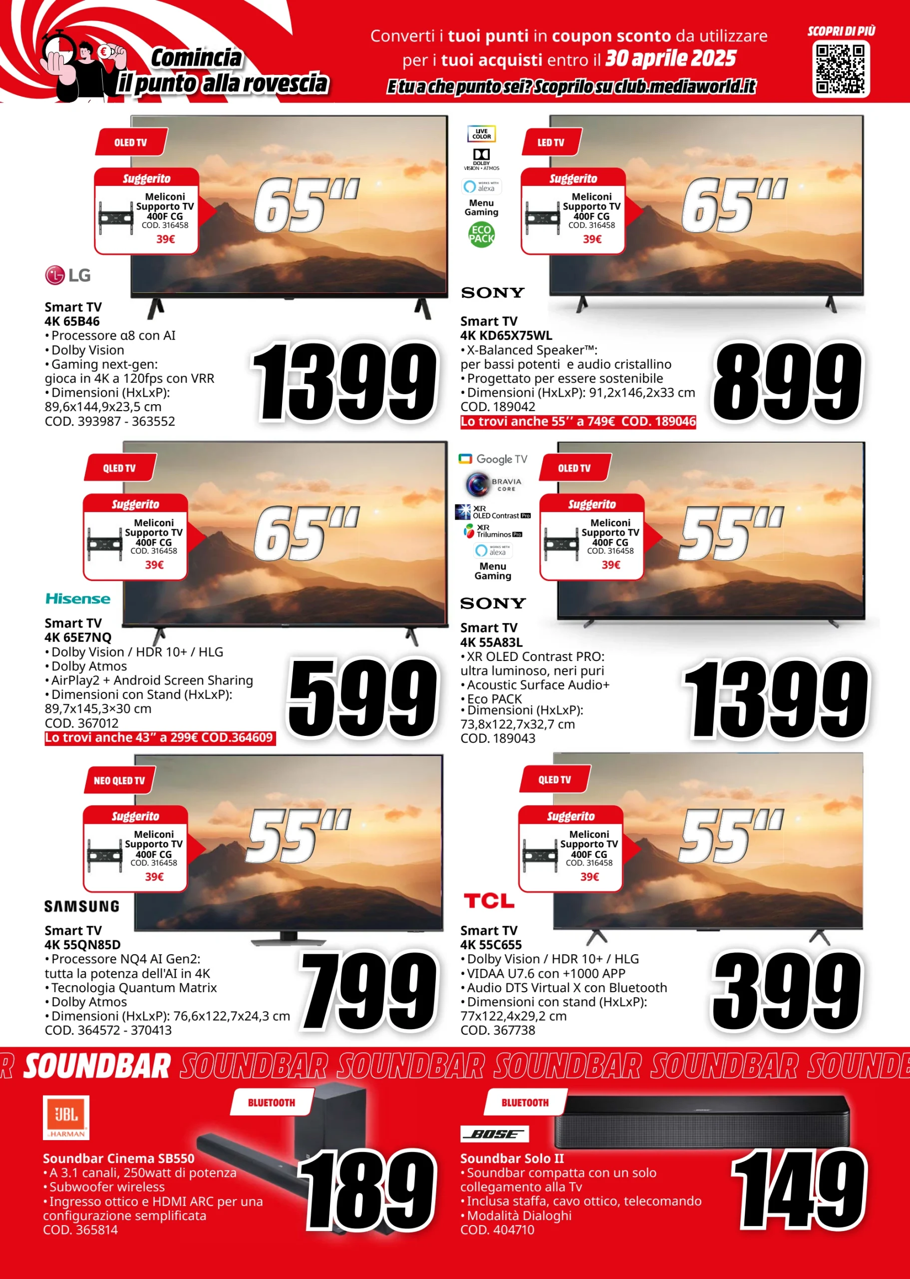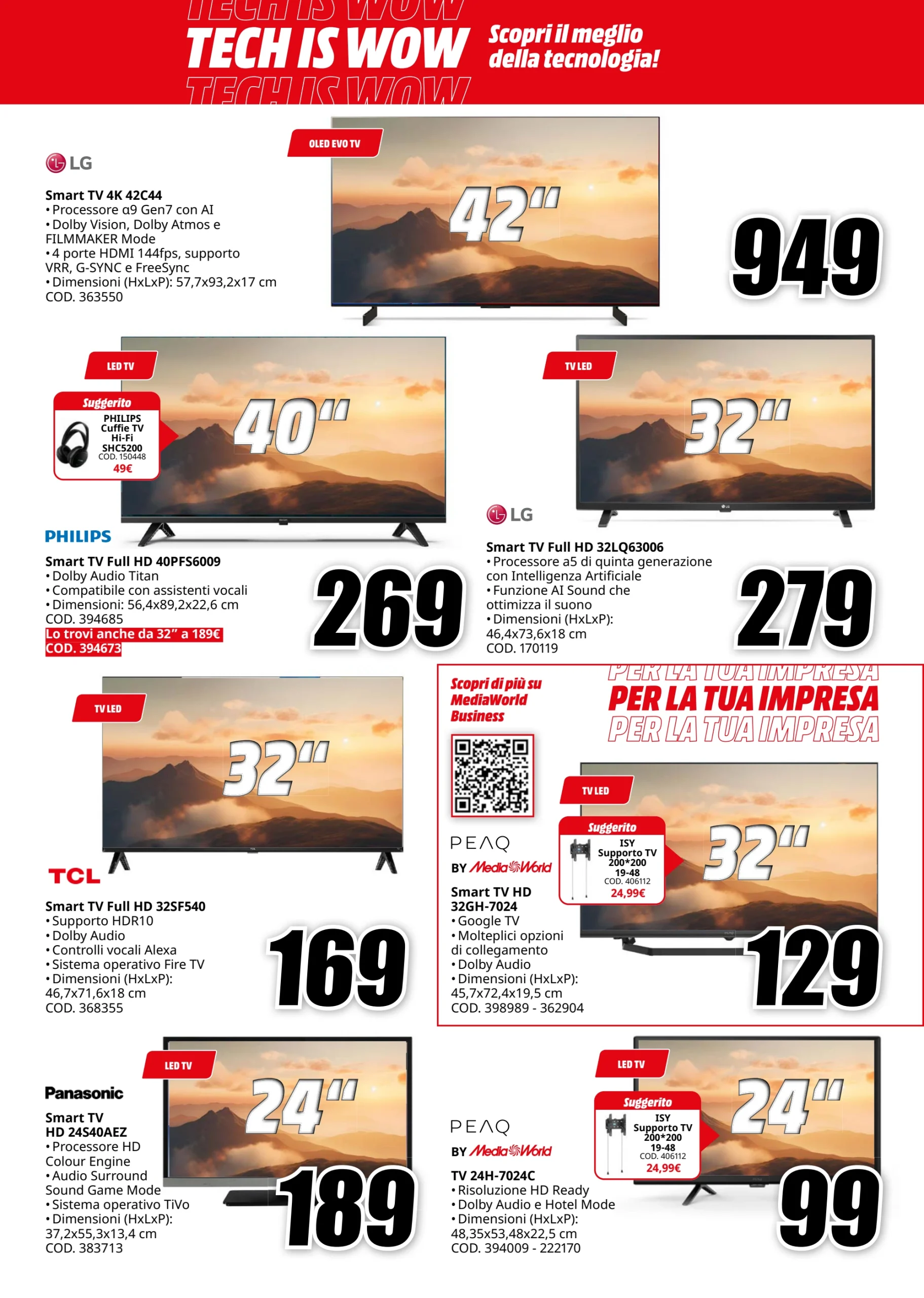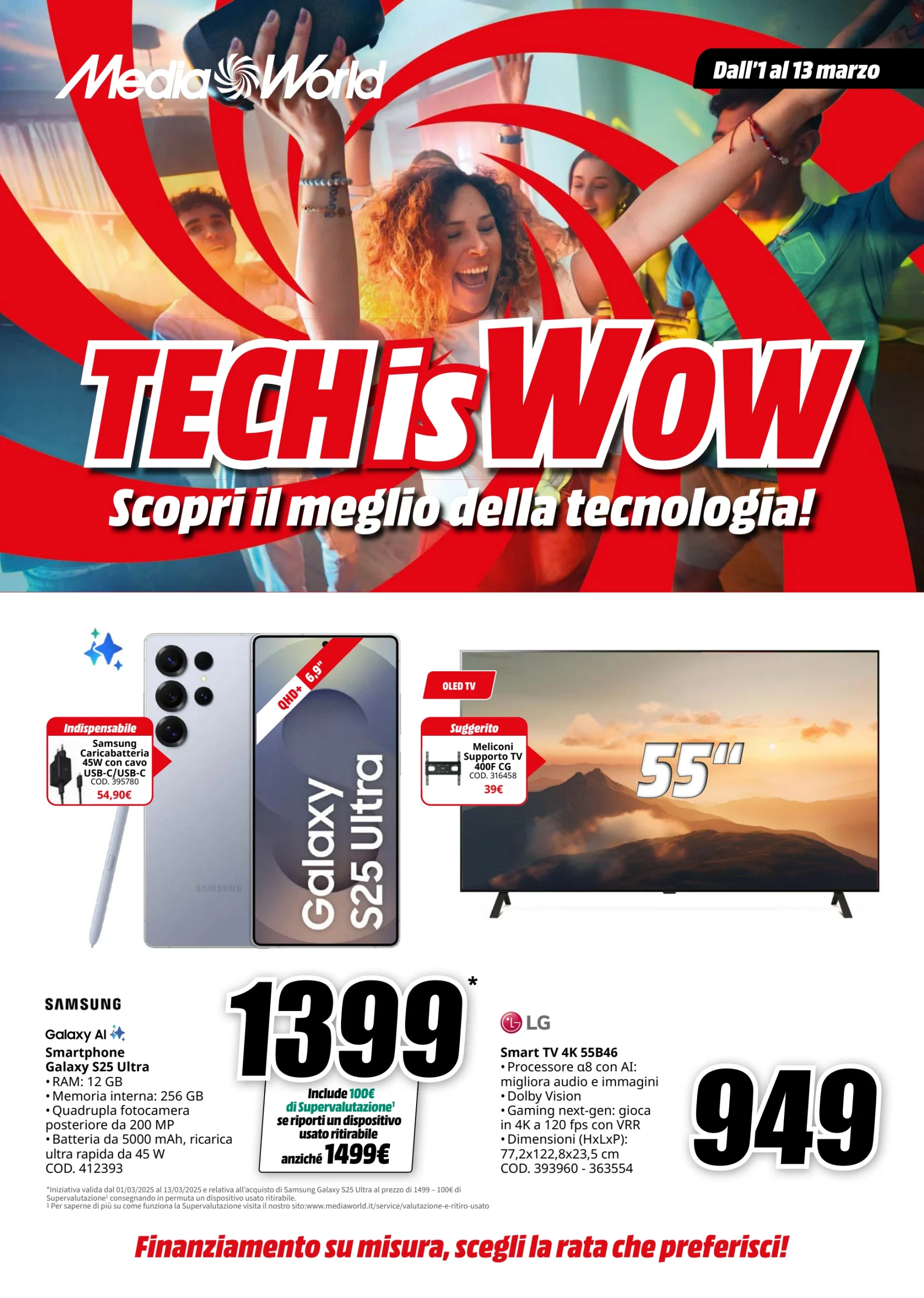 Il nuovo volantino MediaWorld con la promozione “Tech is Wow" proseguirà, in negozio e online, fino al 13 marzo: approfittane subito prima che le scorte dei tuoi prodotti preferiti finiscano.