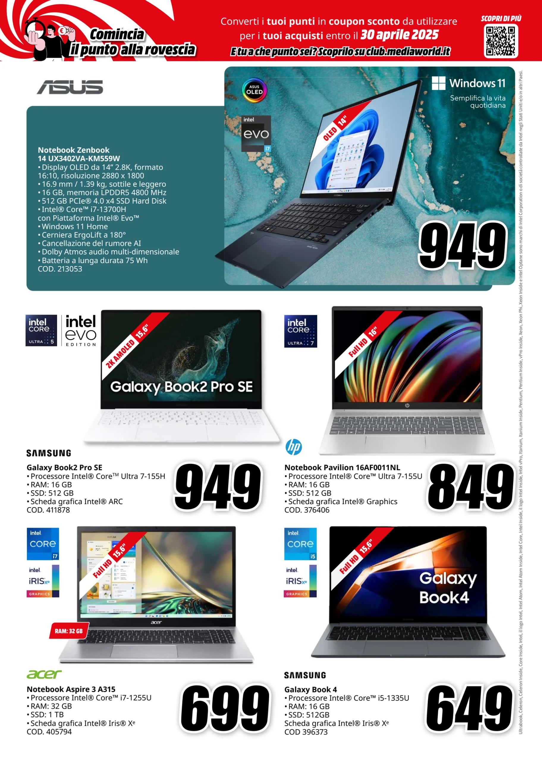 Tante offerte anche tra i computer: c’è, ad esempio, il notebook Acer Aspire 3 A315 che è disponibile a soli 699 euro, con processore Intel Core i7 e ben 32 GB di RAM, con 1 TB di SSD. Oppure il Samsung Galaxy Book 4 a 649 euro, che include invece processore Intel Core i5, 16 GB di RAM e 512 GB di SSD. Entrambi hanno sceda grafica Intel Iris X.