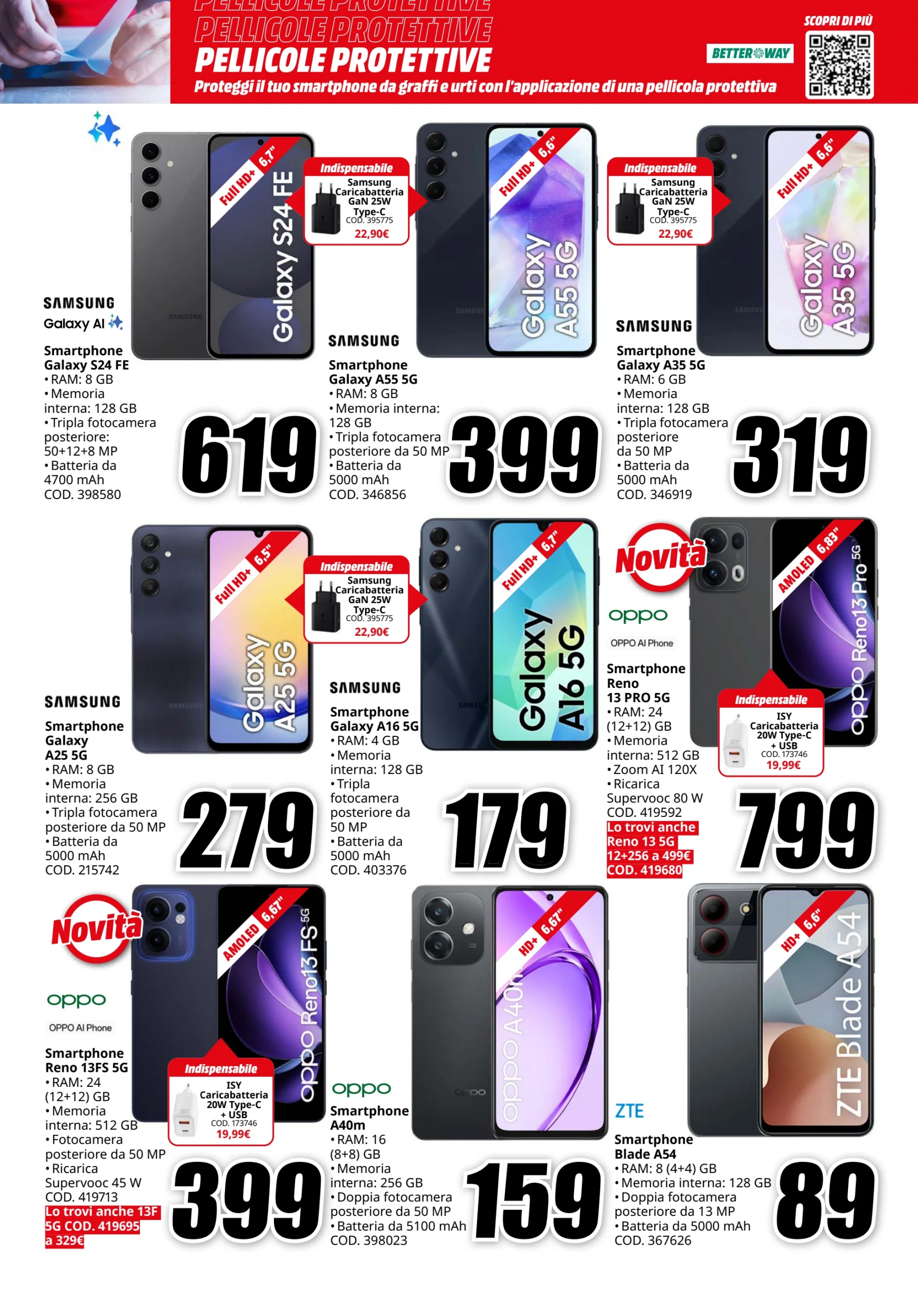Iniziamo la carrellata di offerte con qualche smartphone: tra gli affari migliori, ti segnaliamo Samsung Galaxy S24 FE a 619 euro e Samsung Galaxy A25 5G a 279 euro; OPPO Reno 13FS 5G a 399 euro, seguito da Motorola Razr 50 5G a 599 euro e da HONOR 200 Smart 5G a 149 euro. Come potrai notare, le offerte sono variegate: ci sono sia dispositivi top gamma che economici, ma comunque dalle buone prestazioni.