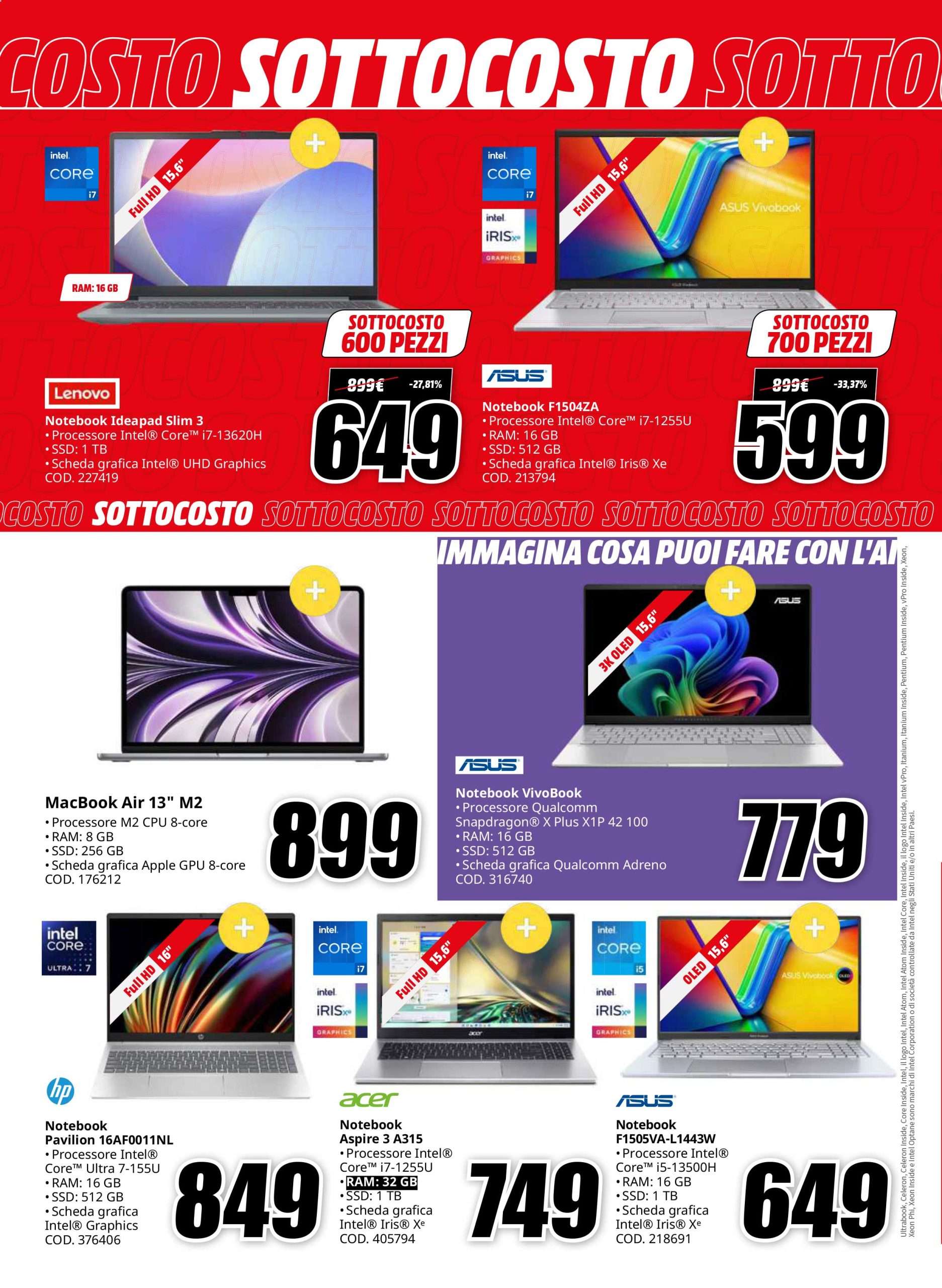 Tra i prodotti in sconto limitati c’è Samsung Galaxy S24 Ultra, in offerta a 949 euro invece di 1.499 euro, grazie al 36% di sconto. Disponibili 1.500 pezzi. Sottocosto anche per il notebook HP 15S a soli 549 euro (30% di sconto), 1.000 i pezzi disponibili, e per smart TV LG 4K OLED EVO da 55" a 1.249 euro (era 1.799 euro, da listino), con soli 500 pezzi disponibili.
