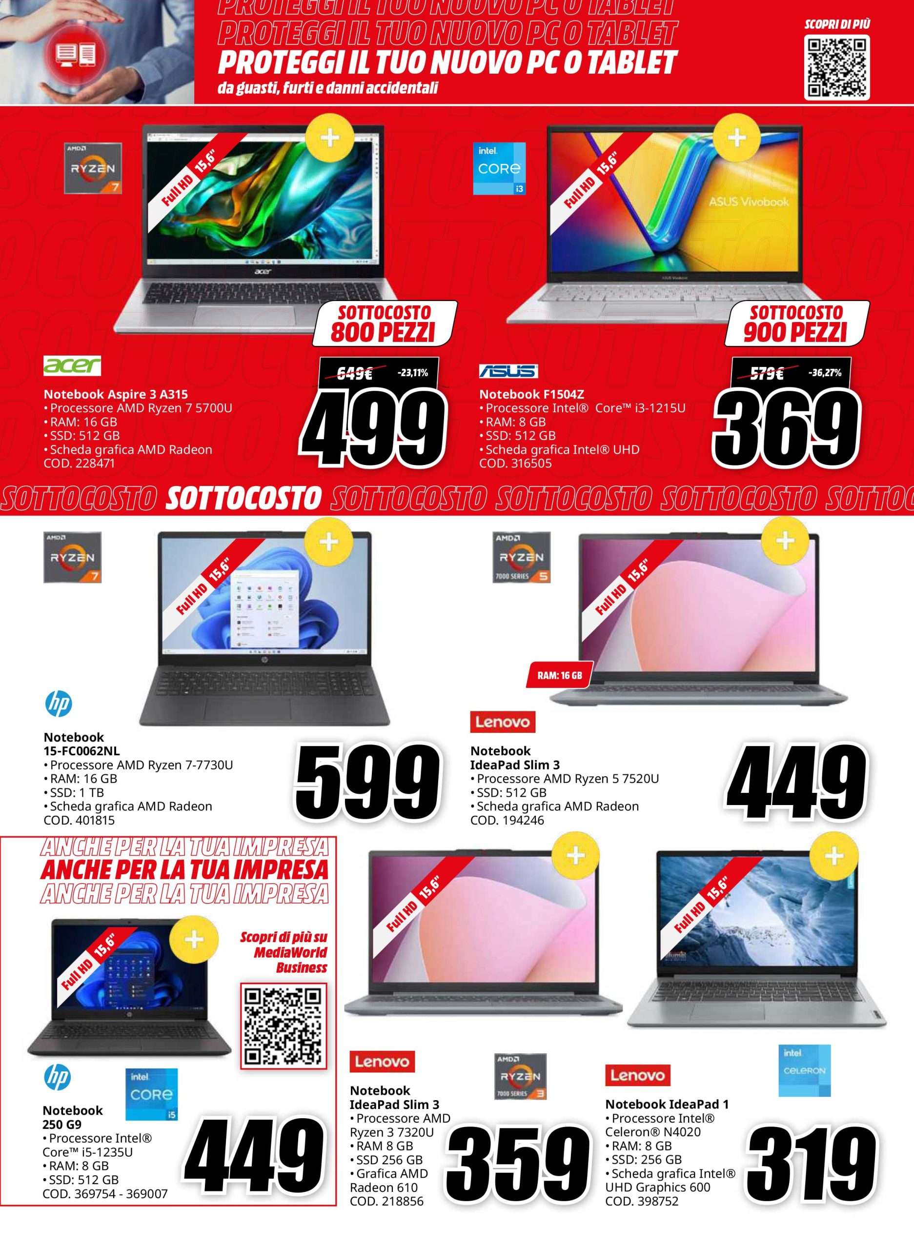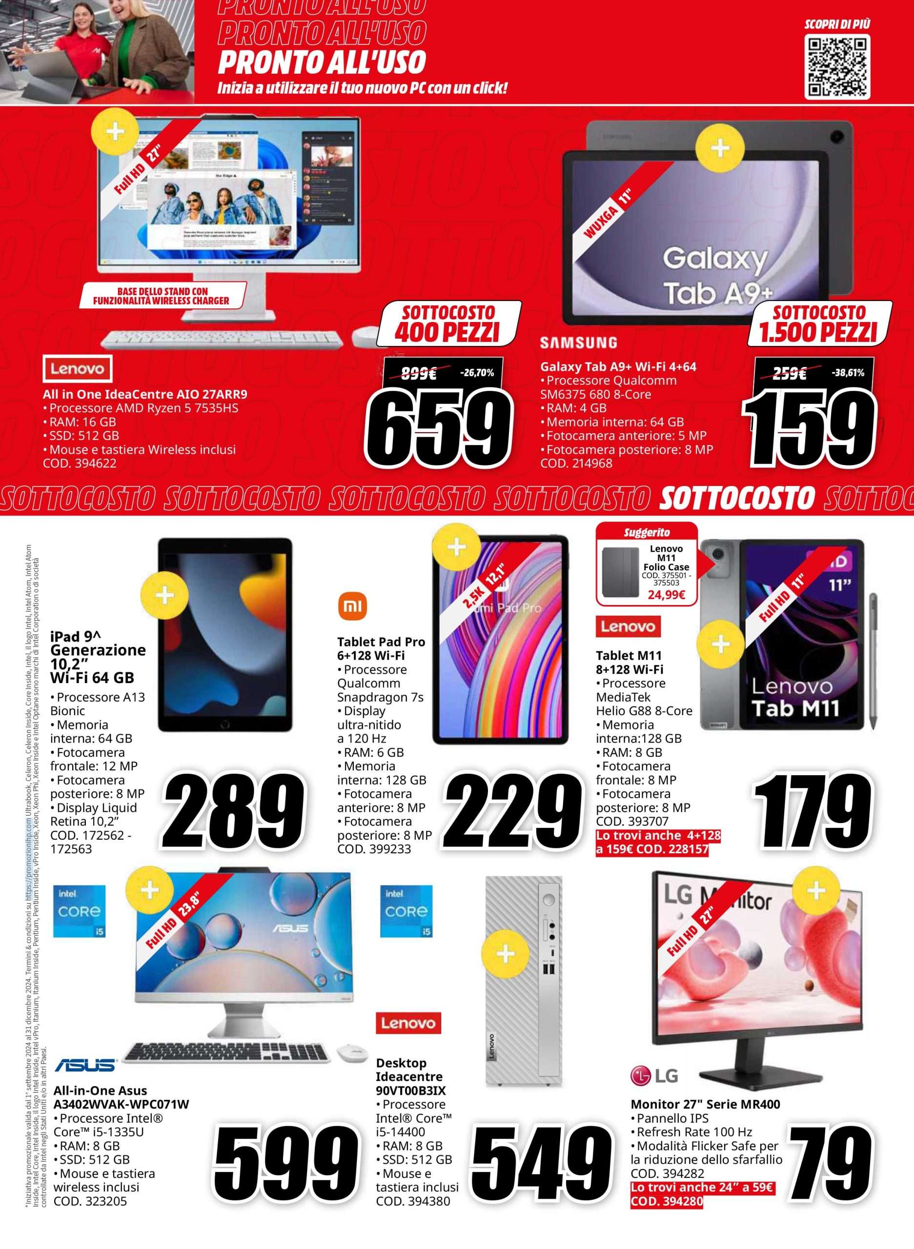 Il sottocosto MediaWorld proseguirà fino al 15 dicembre. Dal momento che i pezzi sono limitati, il nostro consiglio è quello di non attendere troppo se intendete acquistare un articolo che ritenete interessante, altrimenti il rischio è che vada esaurito.