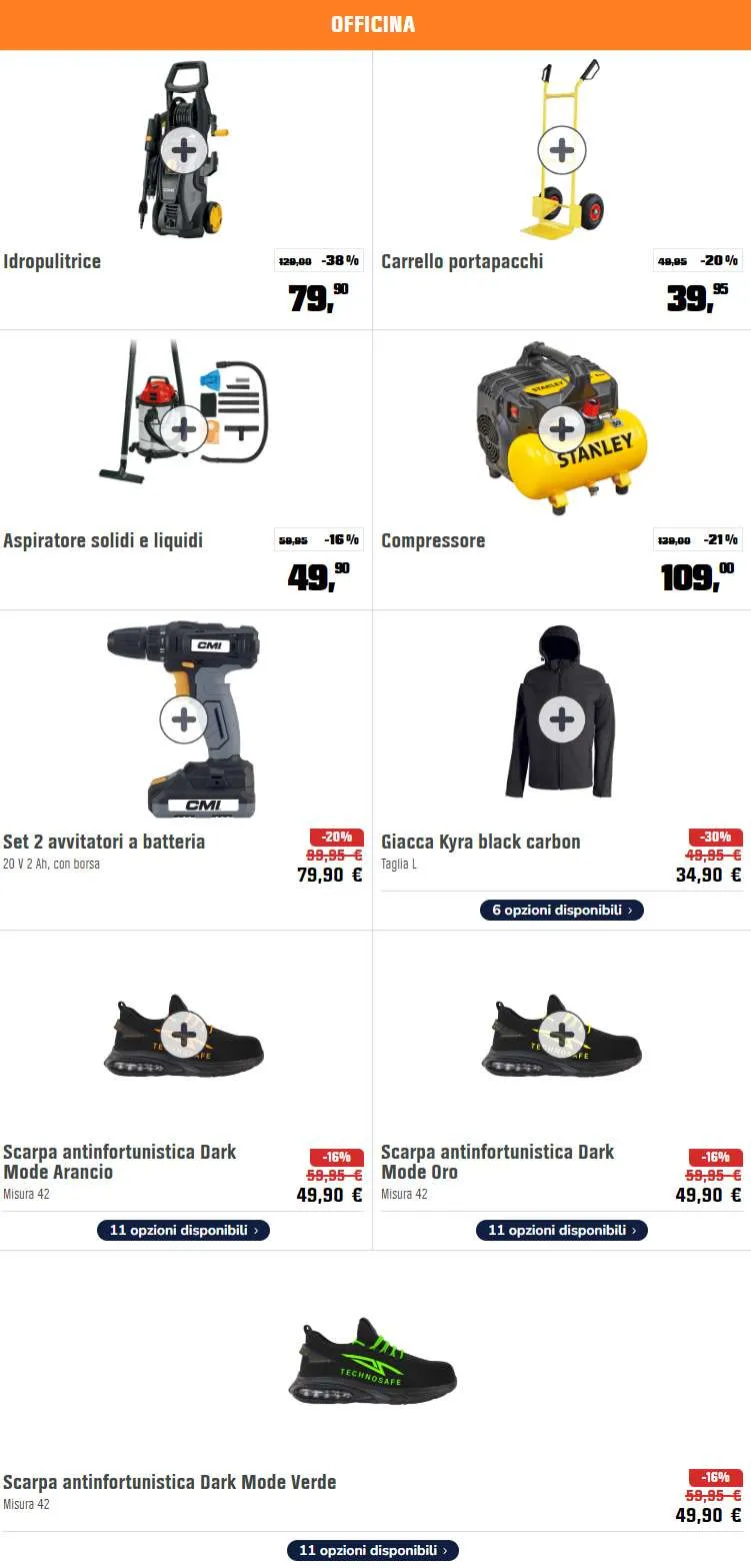 Ottimo prezzo anche per il set che include due avvitatori a batteria a 79,90 euro (20% di sconto). Segnaliamo inoltre un’altra idropulitrice a 79,90 euro con il 30% di sconto, l’aspiratore solidi e liquidi a 49,90 euro (-16%) e il compressore Stanley a 109 euro, scontato del 21%.