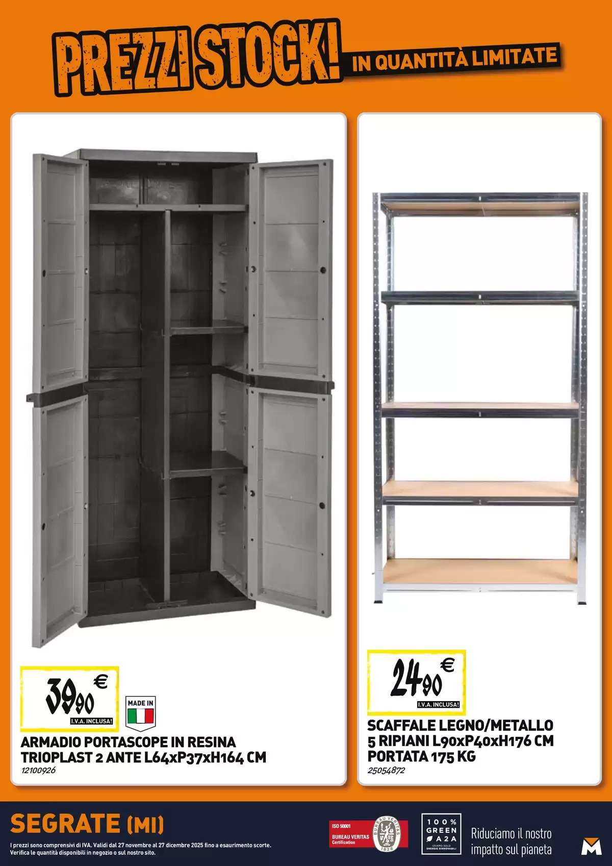 Prezzi stock natalizi da Tecnomat, nel volantino attivo fino al 27 dicembre. Tante le offerte dedicate a chi cerca utensili affidabili, strumenti per il fai da te e soluzioni per casa e giardino a prezzi ribassati. Le scorte, come sempre, sono limitate: l’avvicinarsi delle feste diventa così un’occasione concreta per rinnovare la propria attrezzatura, oppure fare un regalo gradito, senza rinunciare alla qualità.