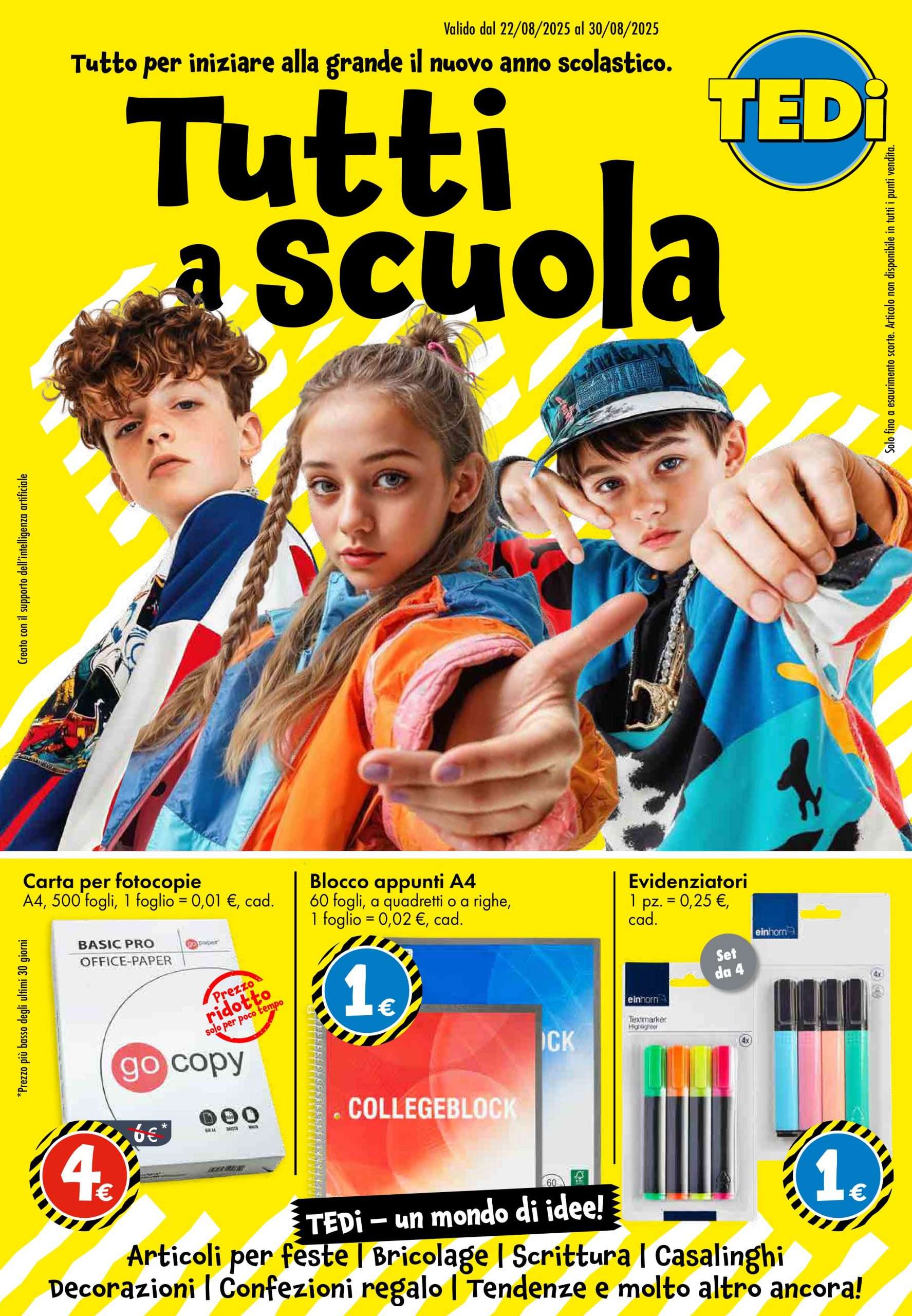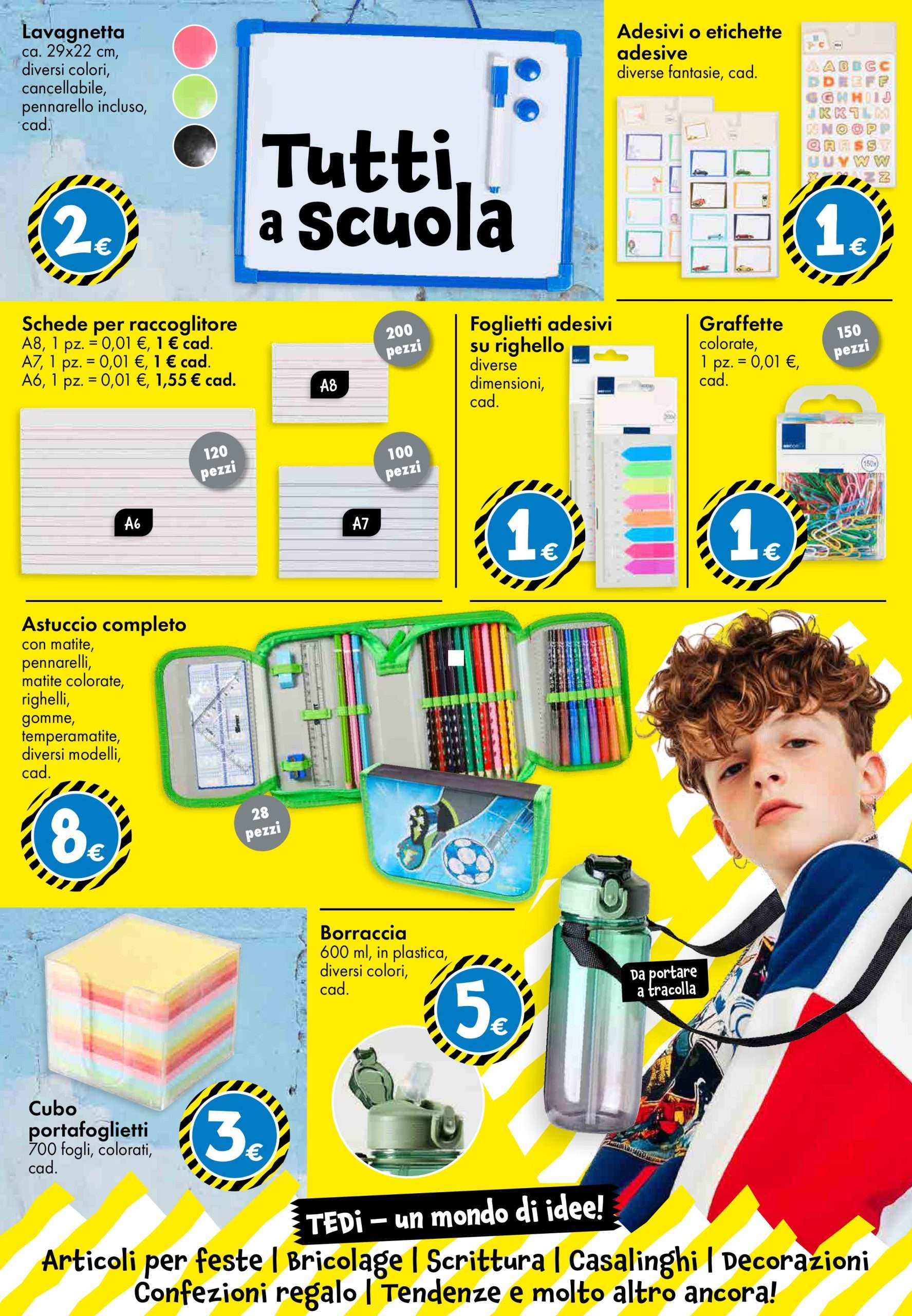 Con l’arrivo del nuovo anno scolastico, TEDi lancia il suo nuovo volantino valido fino al 30 agosto, ricco di offerte imperdibili su articoli per la scuola, piccoli elettrodomestici e accessori per la casa. Un’occasione perfetta per prepararsi al rientro, risparmiando.