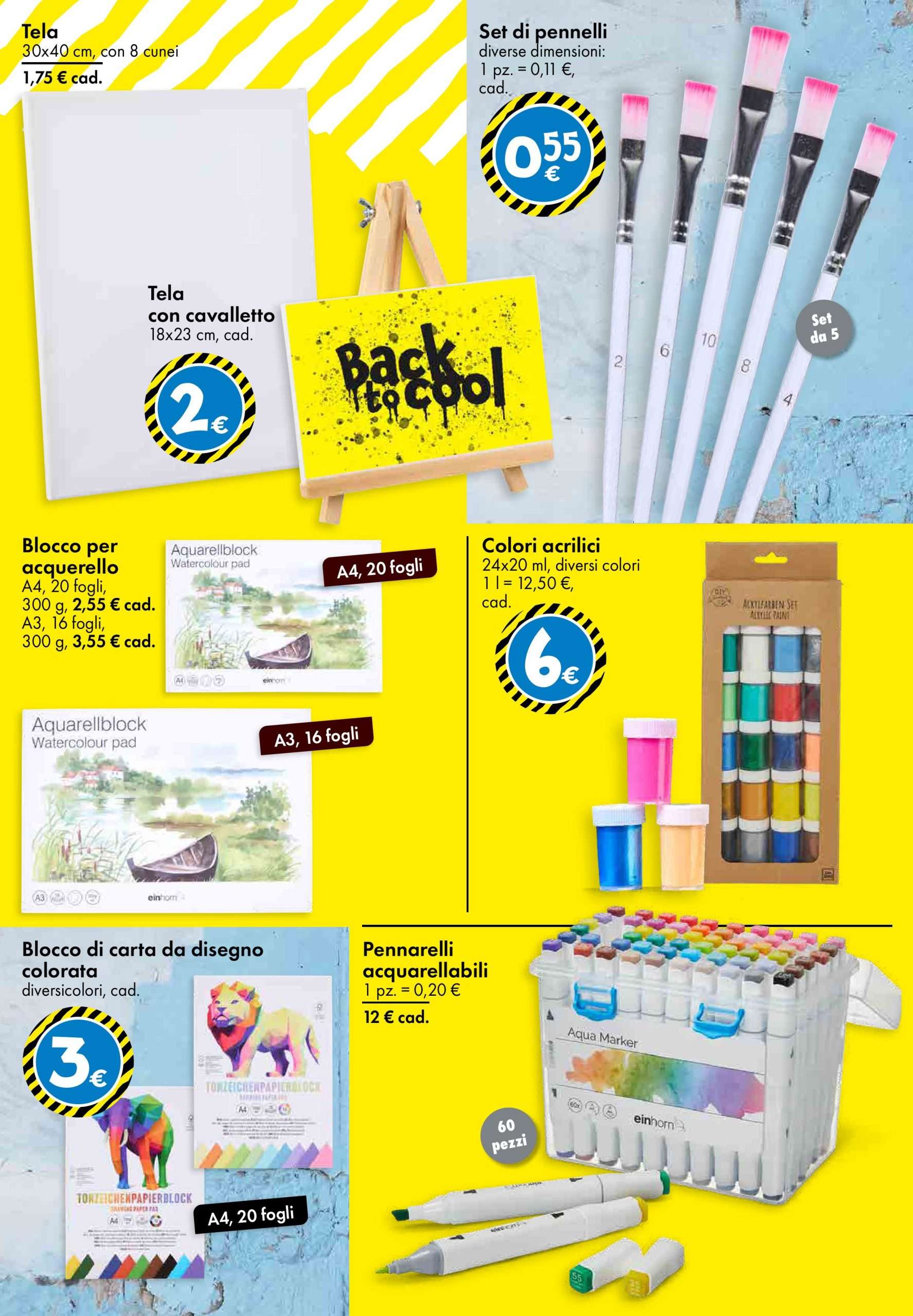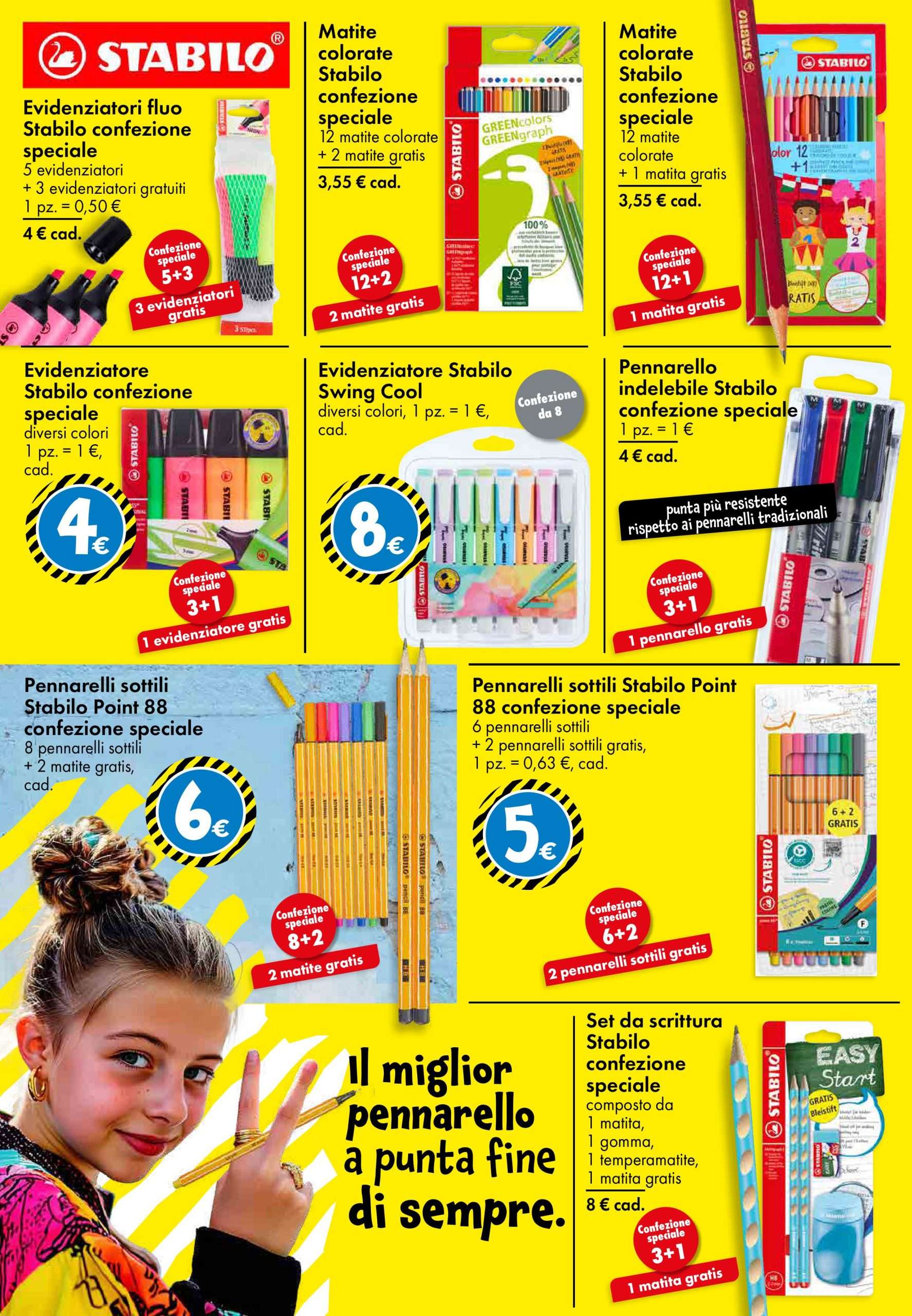 Le offerte scolastiche sono tra le più vantaggiose del volantino: il blocco appunti A4 da 60 fogli, a quadretti o righe, è disponibile a solo 1 euro, così come il set da 4 evidenziatori colorati. Anche la carta per fotocopie A4, confezione da 500 fogli, è proposta al prezzo ridotto di soli 4 euro, un must-have per studenti e uffici.