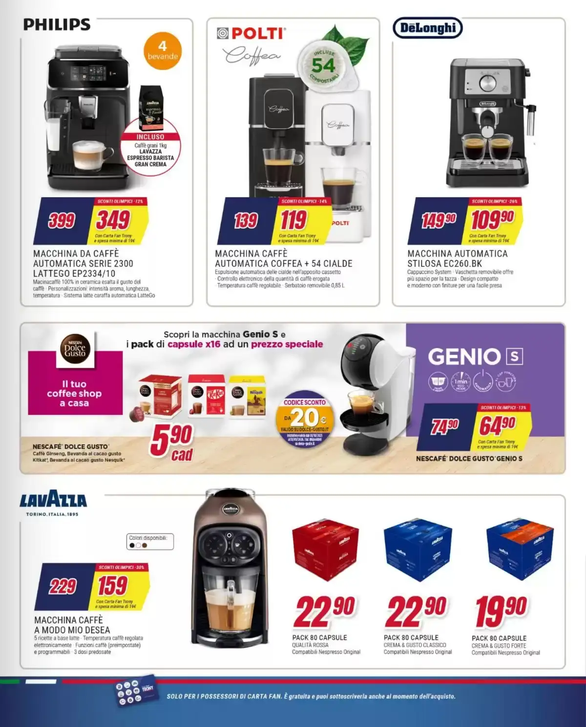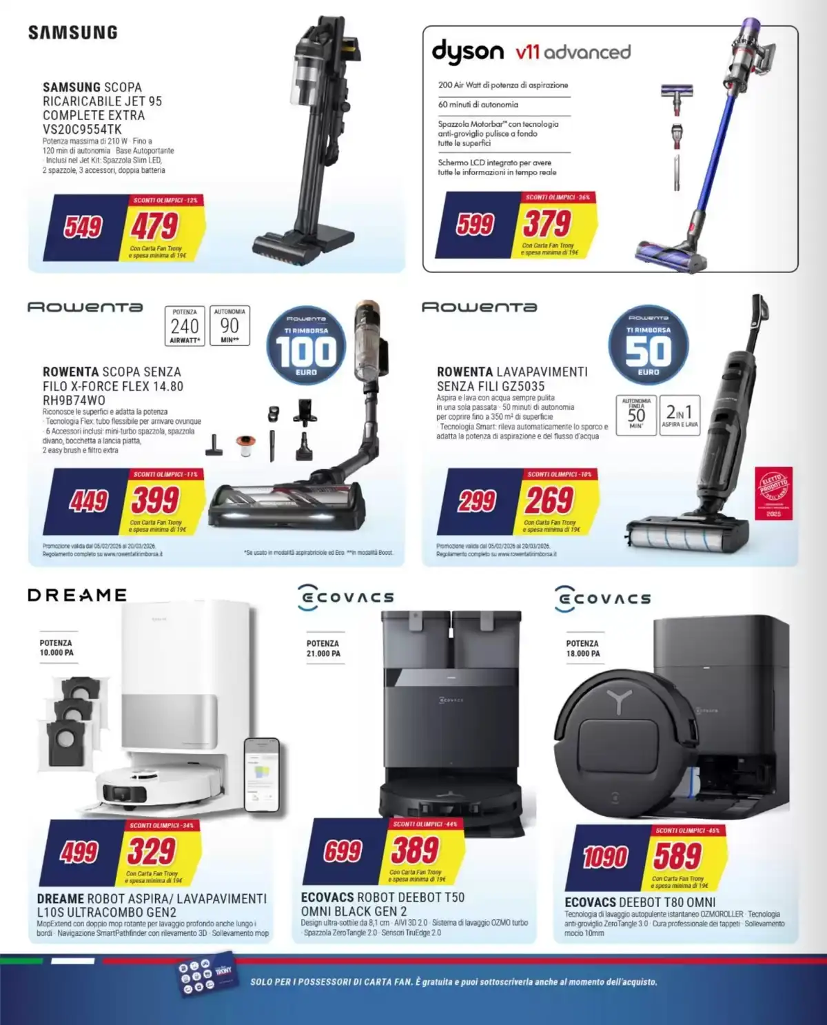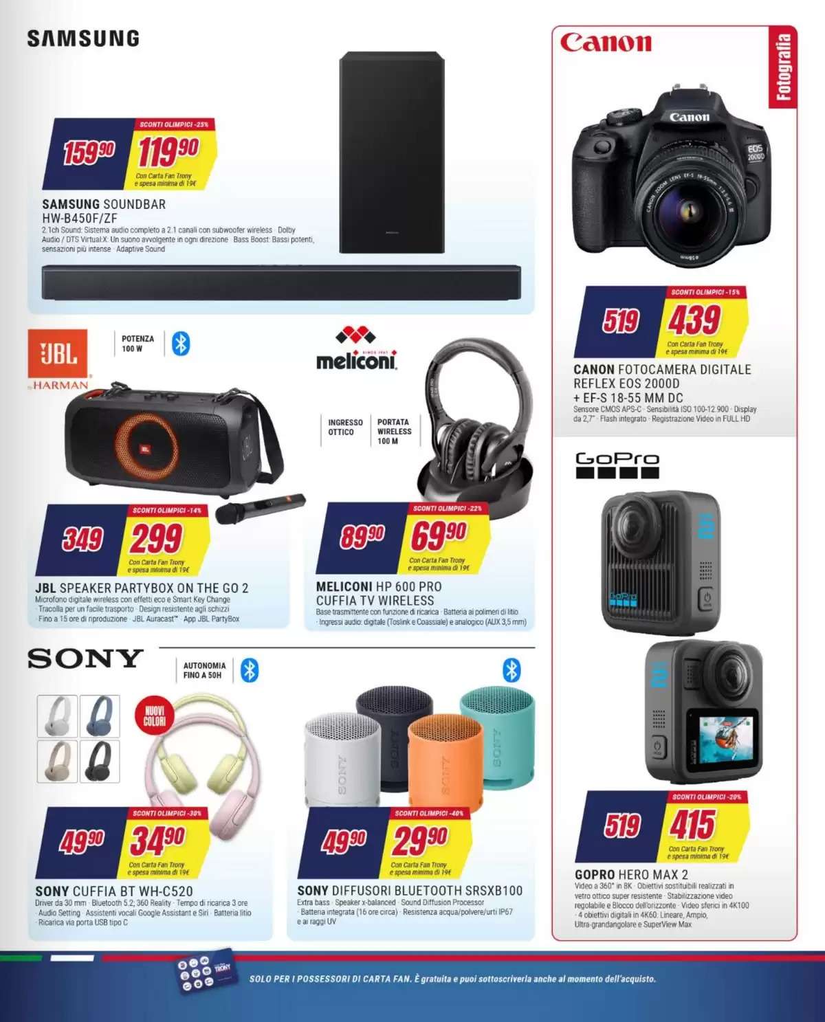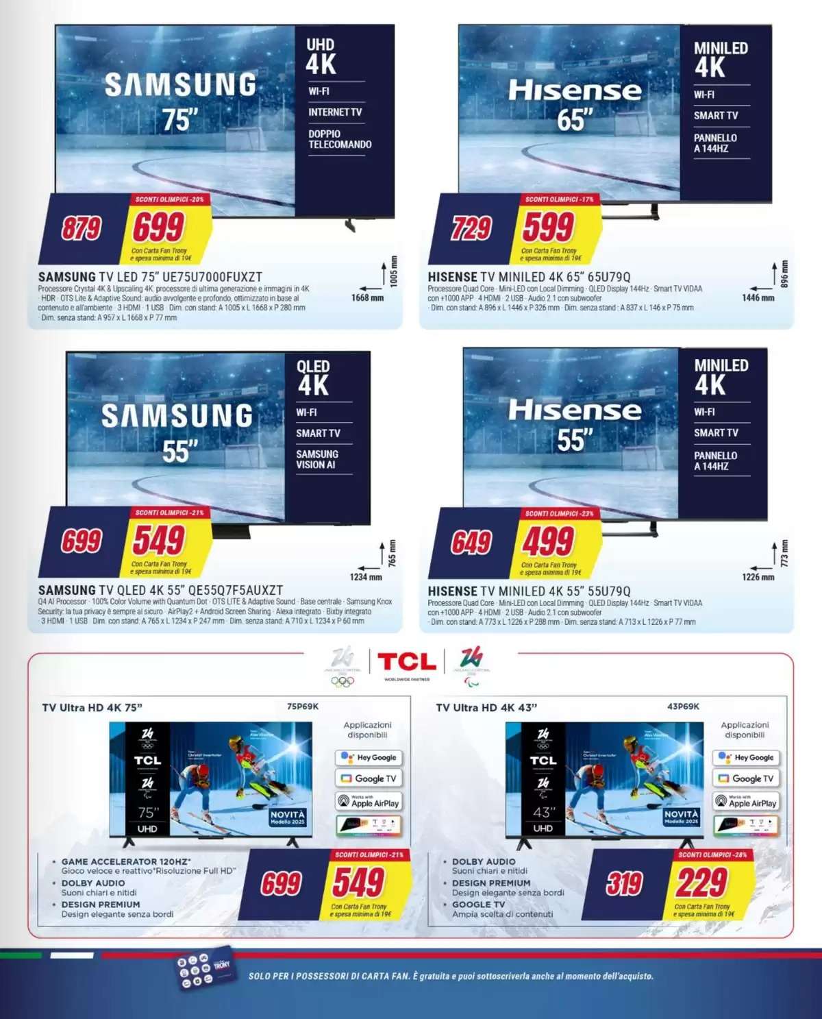 Il volantino Trony con gli sconti olimpici fino al 50% sarà attivo fino al 18 febbraio, salvo esaurimento scorte. per i titolari di Carta Fan (gratuita).