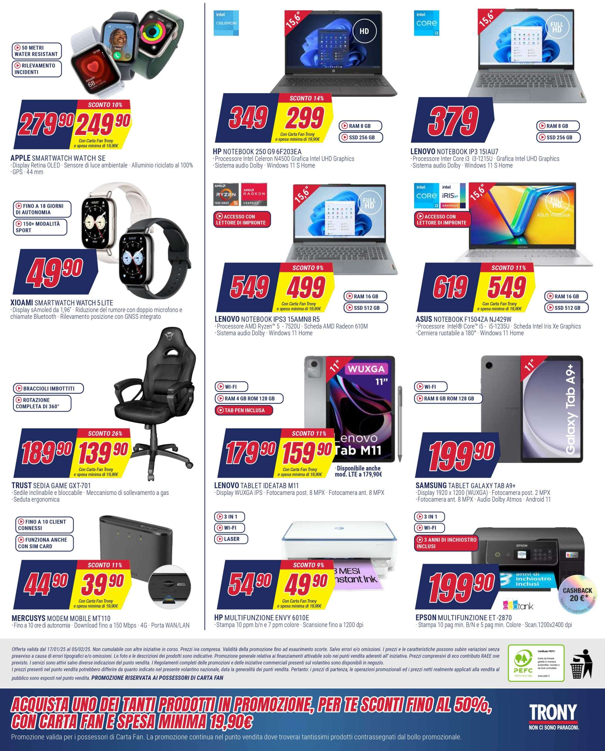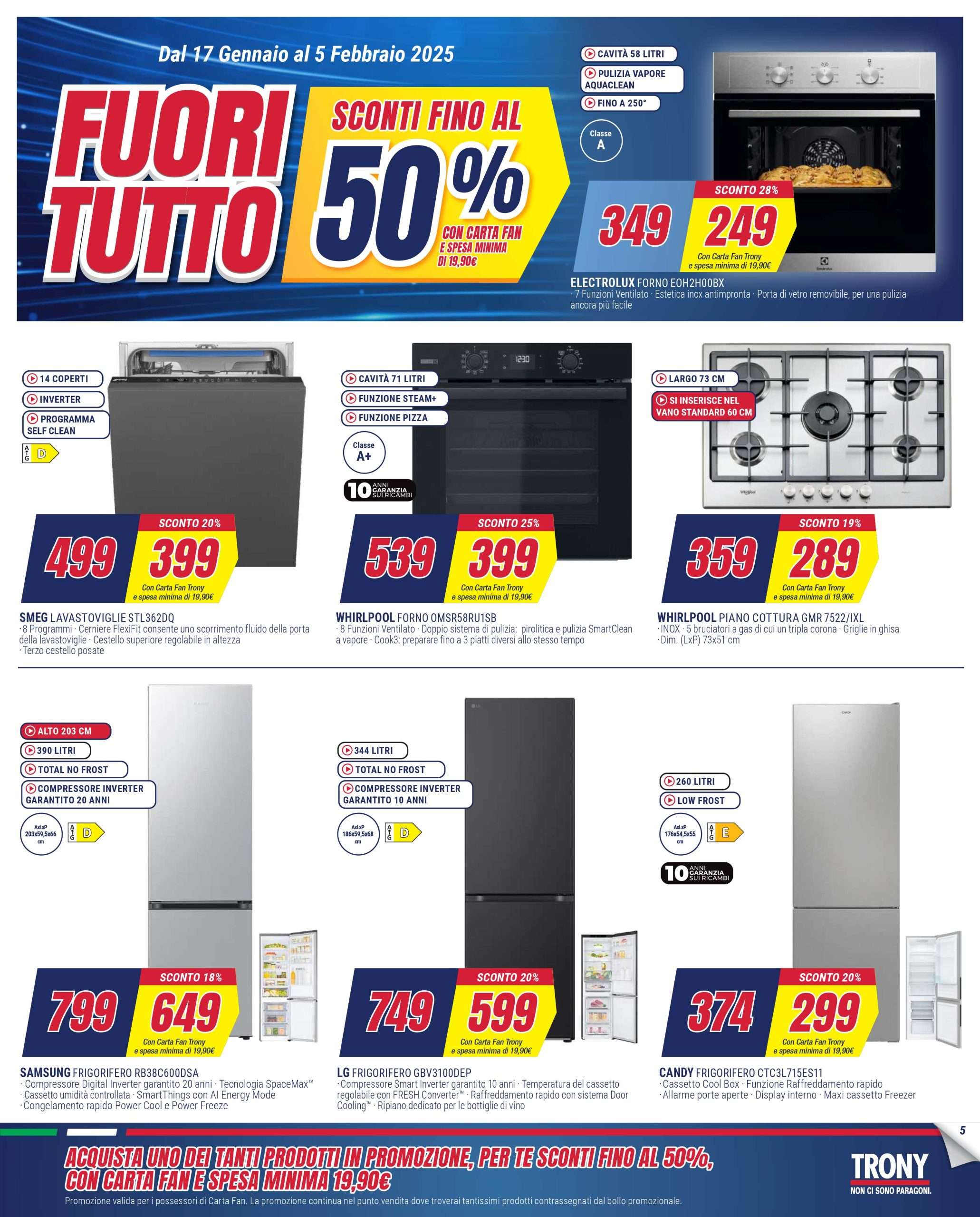 Il volantino Trony sarà attivo fino al 5 febbraio. Gli sconti, fino al 50%, sono disponibili soltanto per i titolari di carta fan (che puoi attivare gratuitamente), con una spesa minima di 19,90 euro. Dal momento che il volantino potrebbe variare in base alla regione, il nostro invito è di controllare quello relativo alla propria area di residenza per accedere a tutte le promozioni disponibili.