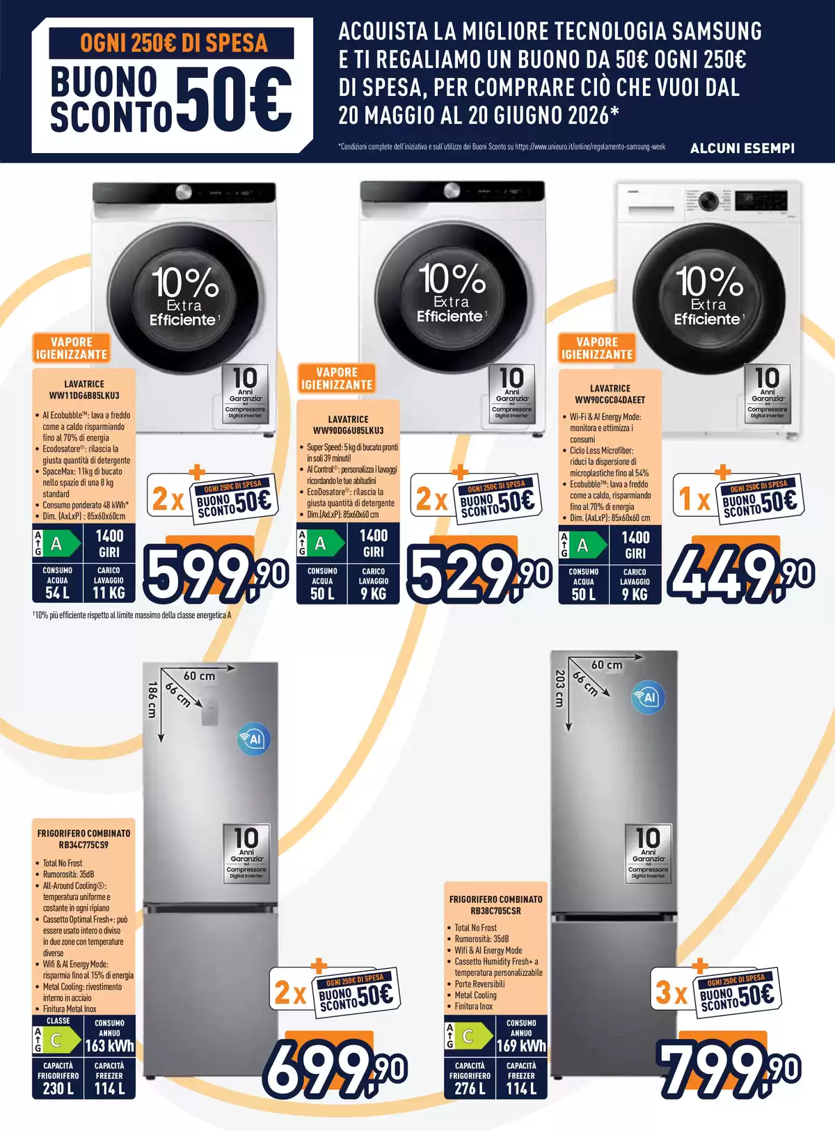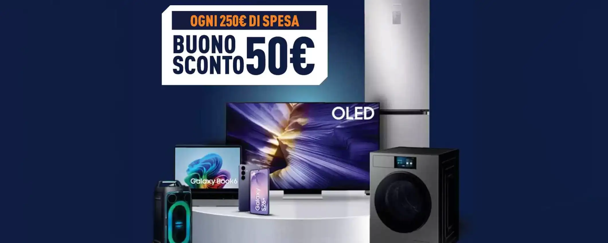 Nuovo volantino speciale Unieuro, tutto dedicato alla Samsung Week: acquistando prodotti Samsung, riceverai un buono sconto da 50 euro ogni 250 euro di spesa, per comprare ciò che vuoi dal 20 maggio al 20 giugno. Ecco alcune tra le migliori offerte.