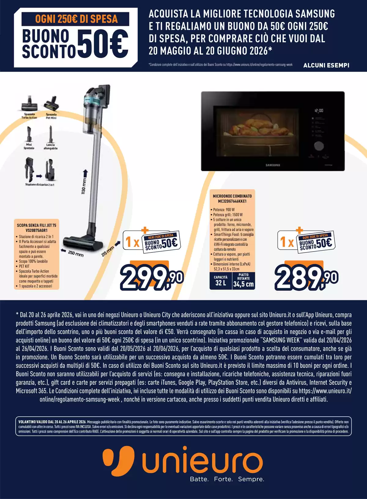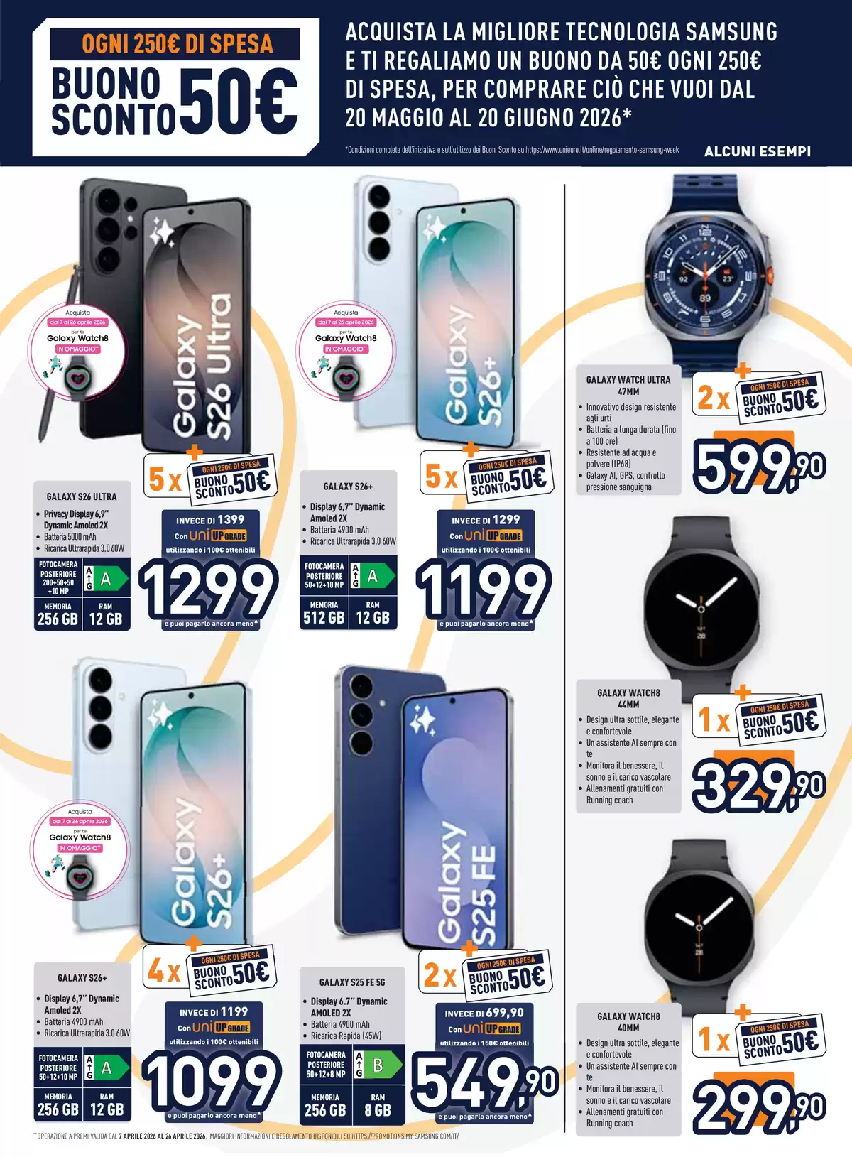 Il volantino Unieuro Samsung Week sarà attivo per un periodo limitatissimo: soltanto fino al 26 aprile, nei punti vendita Unieuro e anche online.
