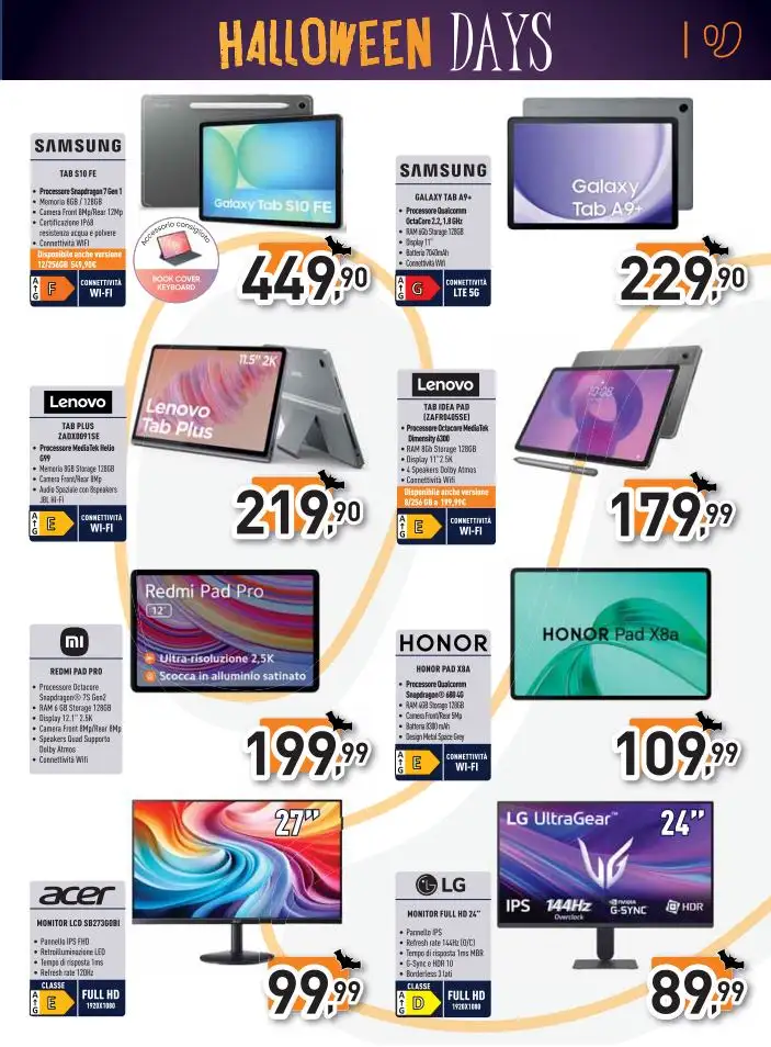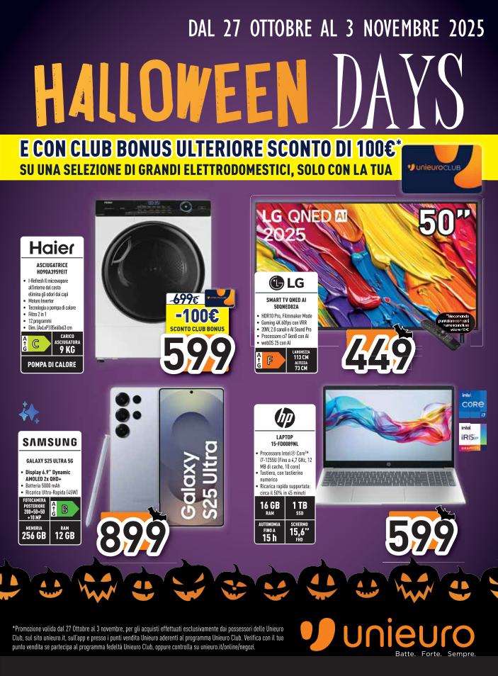 Il volantino Unieuro Halloween Days sarà valido fino al 3 novembre, sia online che nei punti vendita della catena, con disponibilità limtiata dei prodotti in promozione.