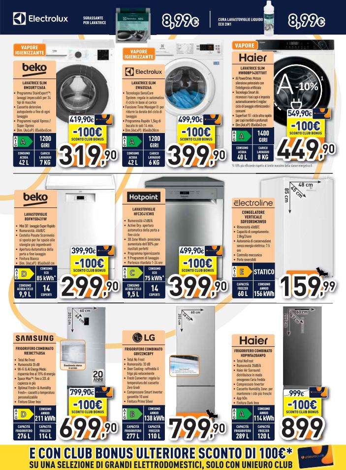 Unieuro propone, in evidenza, l’asciugatrice Haier a 599 euro invece di 699 euro, grazie appunto al bonus Club Unieuro. Questo modello a pompa di calore e da ben 9 chili di capacità è ricco di funzionalità e garantisce la massima efficienza energetica grazie alla classe A+++.