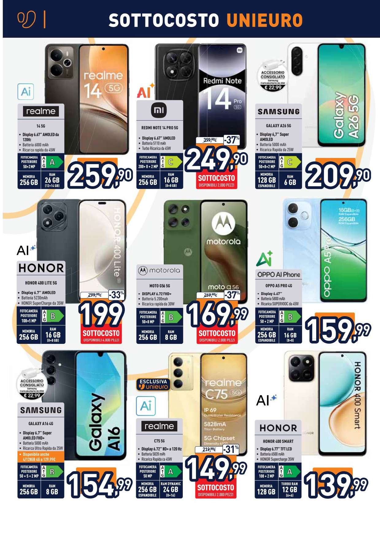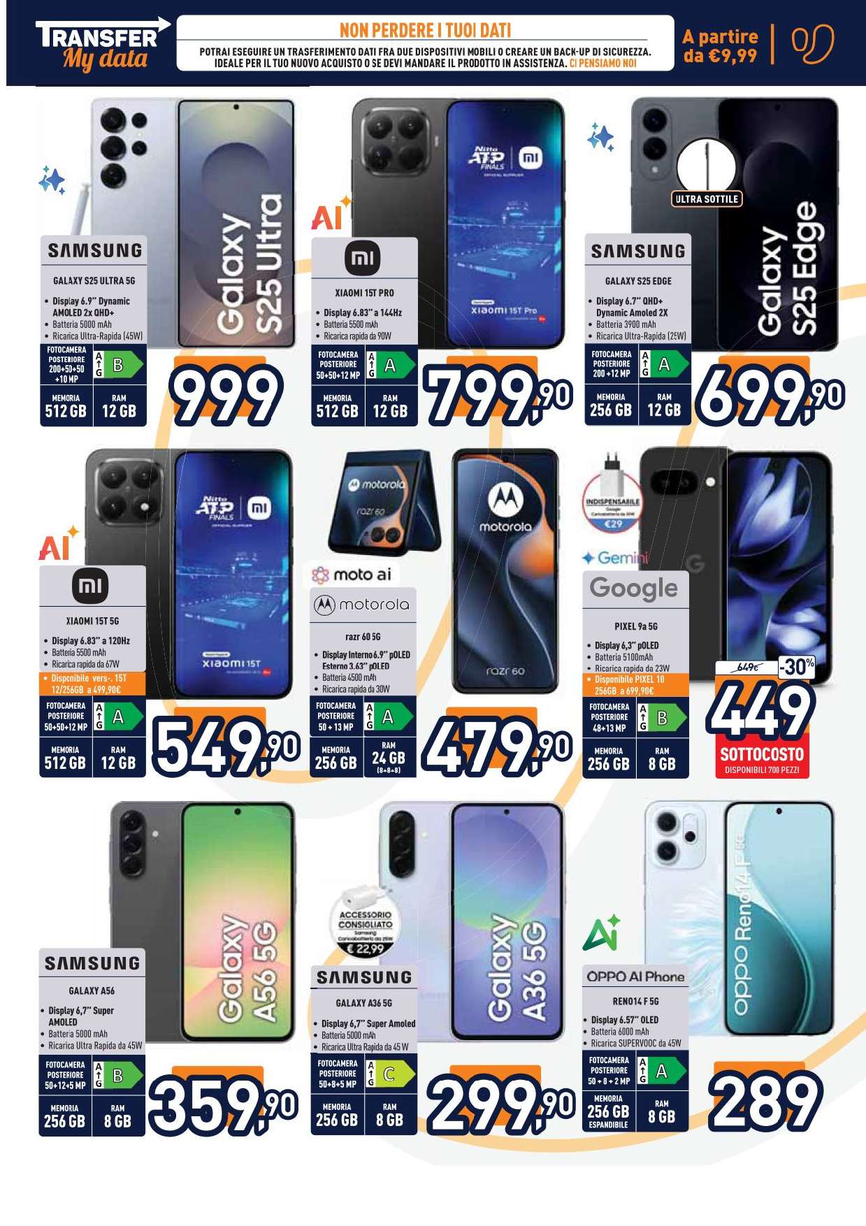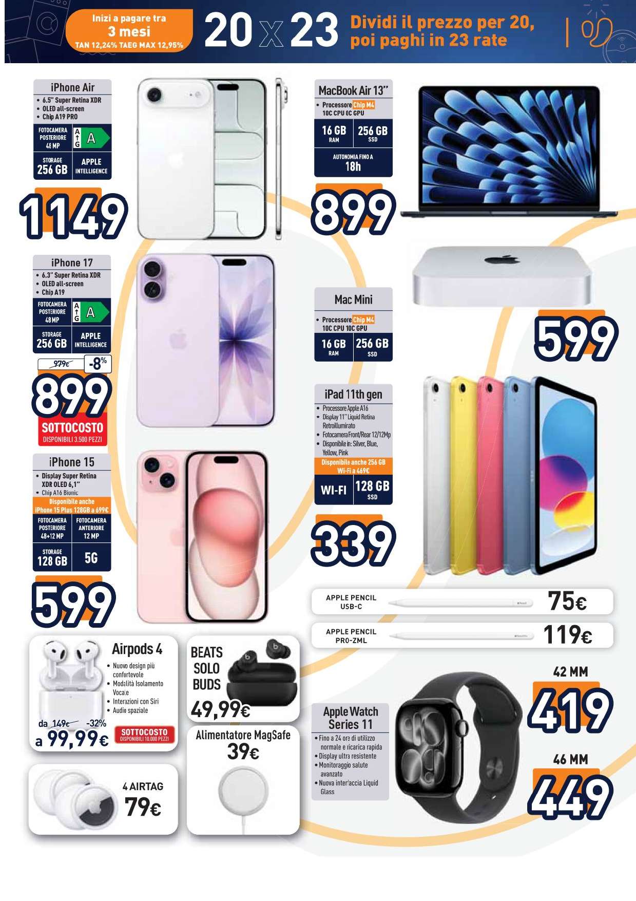 Tra i protagonisti di questo volantino c’è anche iPhone 17 Pro Max, uno tra i top gamma premium più avanzati disponibili, con fotocamera professionale e prestazioni eccellenti. Il prezzo, nella versione da 256 GB di memoria interna, è di 1.399 euro con 3.000 pezzi disponibili.