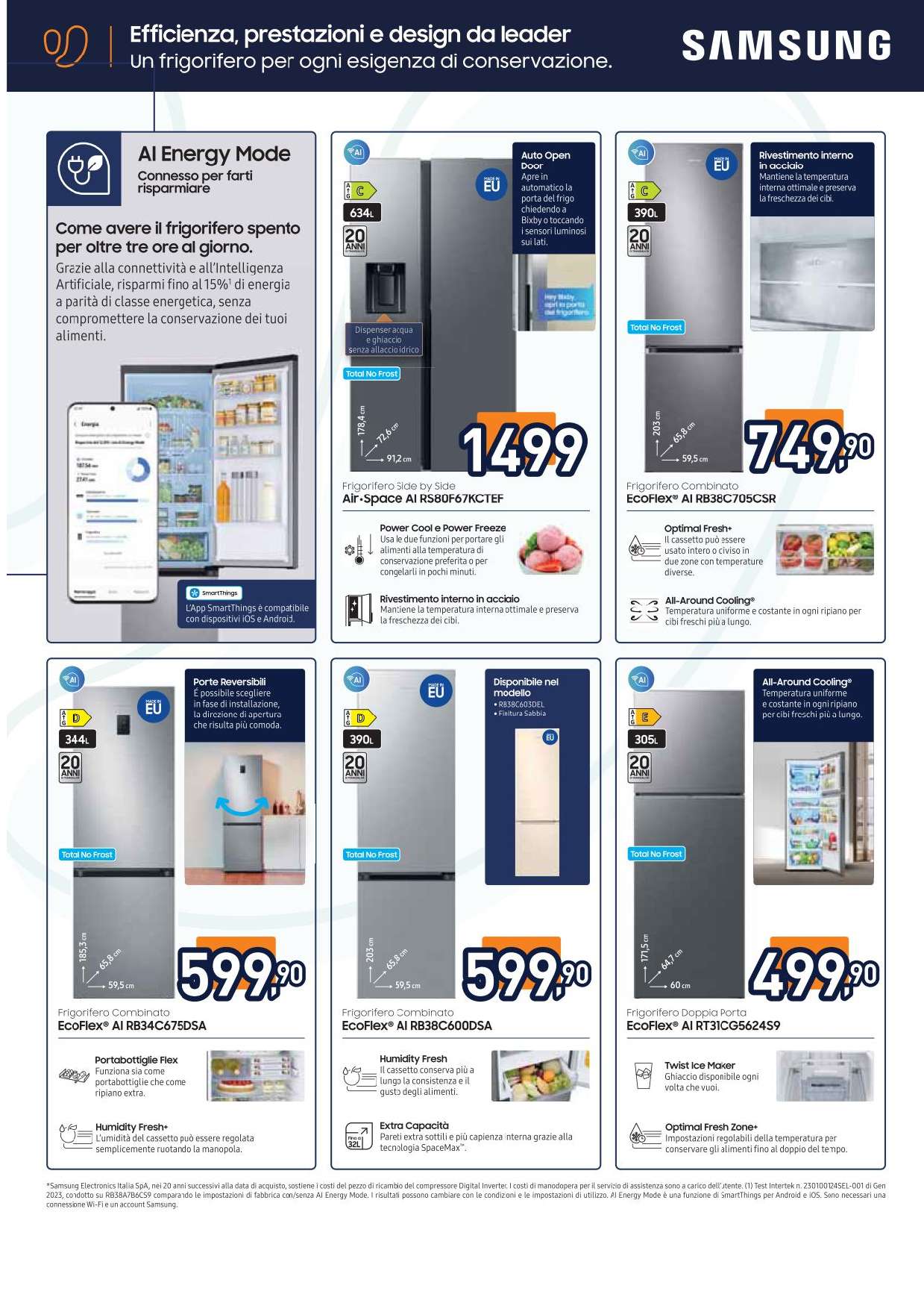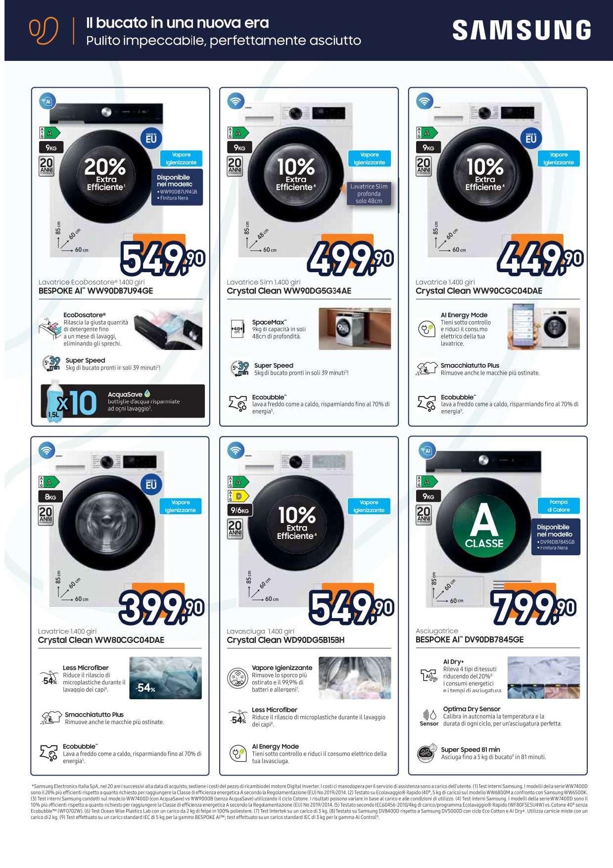 Infine, per quanto riguarda gli elettrodomestici, segnaliamo la lavatrice Samsung AI ricca di programmi e funzionalità per i tuoi capi, al prezzo sottocosto di 499 euro. Cinquecento i pezzi in stock.