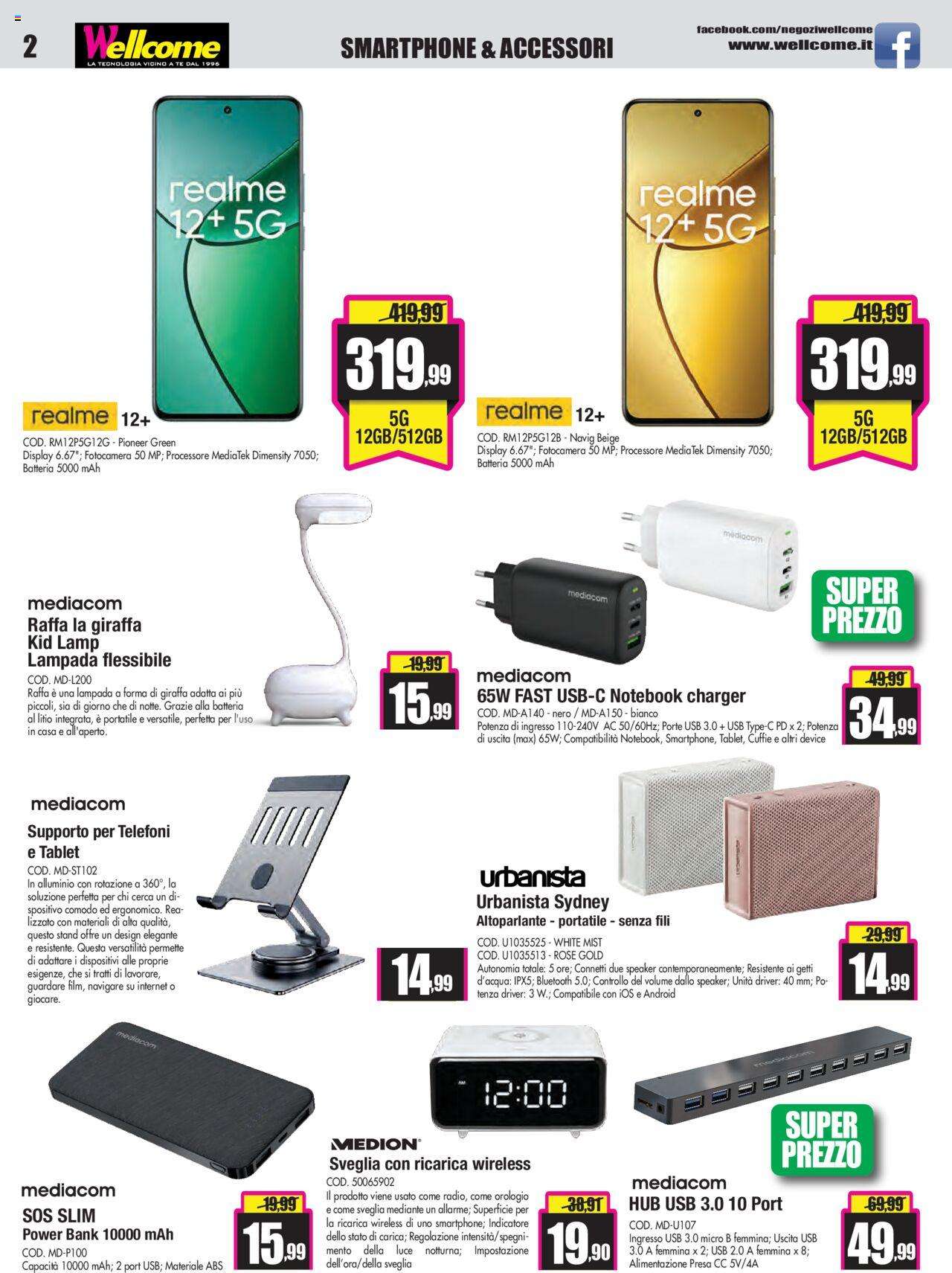 Wellcome pone in evidenza, nel suo nuovo volantino, quattro prodotti. Il primo è il notebook Lenovo V15-IRU Gen4 a 539 euro, seguito dal notebook Dell Vostro 3520 a 769 euro e dal notebook Acer A315-19-50 a 579 euro. Offerta per il Mediacom SmartPad Azimut 4 Pro a 169,90 euro, invece di 199,90 euro.