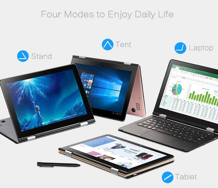 Questo laptop ibrido, composto da uno schermo touch e una tastiera ruotabile, ricorda un po’ nel design le linee della serie Yoga di Lenovo, anche perché il suo display può ruotare davvero parecchio. Display che è di tipo IPS con diagonale da 10,1 pollici e risoluzione 1280 x 800 pixel. Il produttore lo definisce Ultrabook – forse esagerando un po’ – comunque sembra davvero parecchio leggero e sottile: 13mm x 790 grammi.