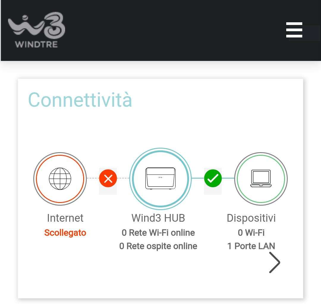 Accedendo al backend del router modem il messaggio che si riceve è di Internet scollegato, come visibile nella foto: