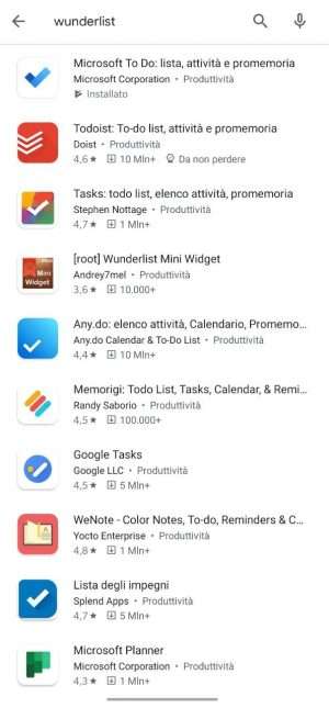 Inoltre, appena avviata l’applicazione per la prima volta – se non l’avete mai utilizzata – comparirà un’utile schermata che vi chiederà se in precedenza eravate utenti di Wunderlist. In questo caso, potrete usufruire dell’importazione guidata dei dati da Wunderlist, direttamente all’interno di Microsoft To Do. Un altro chiaro segnale della volontà di utilizzare To Do, come successore dell’applicazione appena mandata in pensione, è visibile direttamente all’interno del Google Play Store: provate a cercare “Wunderlist” e date un’occhiata al primo risultato!