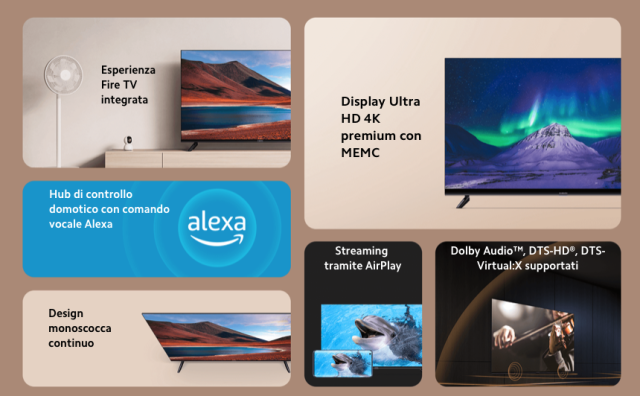 La soluzione ideale per portare a casa un prodotto di ultima generazione, naturalmente compatibile con il nuovo digitale terrestre, e con tutto il meglio che i sistemi Fire TV possono offrire per l’intrattenimento. Senza trascurare la presenza del supporto all’assistente vocale Alexa, richiamabile premendo un pulsante sul telecomando: perfetto per chiedere informazioni oppure gestire la casa smart, semplicemente usando la voce.