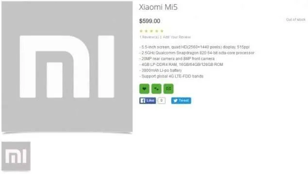 Dello Xiaomi Mi5 non sentiremo parlare in maniera ufficiale fino a gennaio, ma il rivenditore online Oppomart ha pubblicato, forse per errore, l’intera scheda tecnica del prossimo top di gamma. La pagina non è più disponibile, ma i più attenti hanno già condiviso online uno screenshot a testimonianza dell’accaduto.