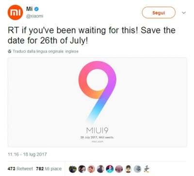 Per quanto riguarda invece la MIUI 9, che sarà lanciata anch’essa il 26 luglio, non siamo sicuri se si tratta di una riprogettazione dell'interfaccia interna o no, ma una cosa è certa, sarà basata su Android Nougat. Sebbene Android O uscirà a breve, dubitiamo fortemente che Xiaomi possa già basare la MIUI 9 sulla nuova versione dell'OS Google.