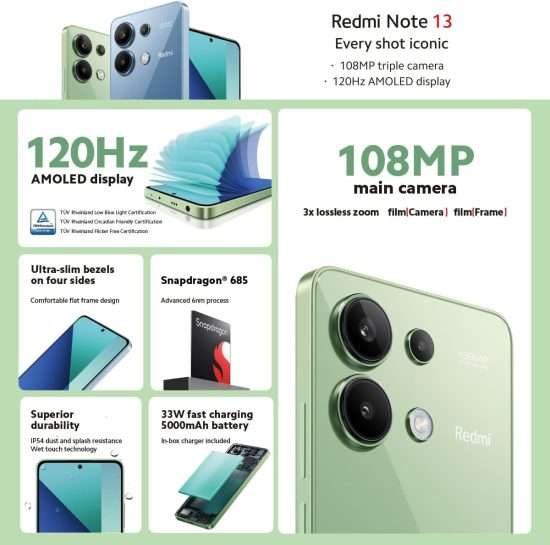 Xiaomi Redmi Note 13 è lo smartphone, potente e accattivante nel design, che non ti aspetti di poter prendere a un prezzo così piccolo. Infatti, nonostante la sua imponente scheda tecnica, da Amazon in questo momento lo porti a casa a 198€ circa appena. Lo ricevi anche in modo super veloce e gratuito, se sei abbonato ai servizi Prime. Sii veloce: la disponibilità è limitata.