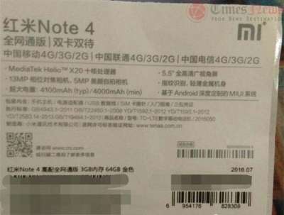 È trapelata un’immagine della scatola di acquisto di Xiaomi Redmi Note 4, su cui sono riportate alcune delle specifiche tecniche del dispositivo cinese. La foto è stata pubblicata da Times News.