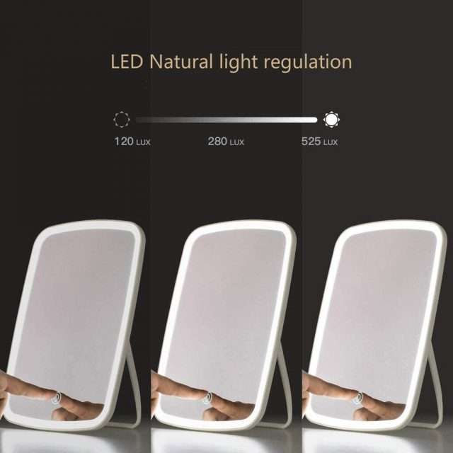 Puoi regolare l’inclinazione, scegliere se la luce dev’essere più o meno intensa e sistemarti senza problemi: non è uno specchio a ingrandimento, quindi è perfetto per truccarsi, pettinarsi, applicare maschere viso, ecco.