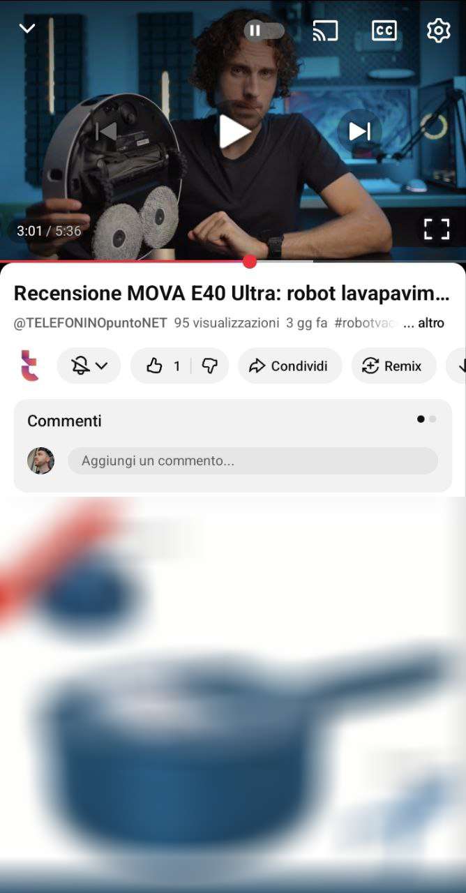 In modalità landscape, i comandi principali di Youtube (Mi piace, commenti, condivisione e salvataggio) sono adesso raggruppati in una “pillola” situata nell’angolo in basso a sinistra, molto più ordinata e meno invadente rispetto a prima. Anche le animazioni di avanzamento e riavvolgimento sono state rese più fluide e discrete.