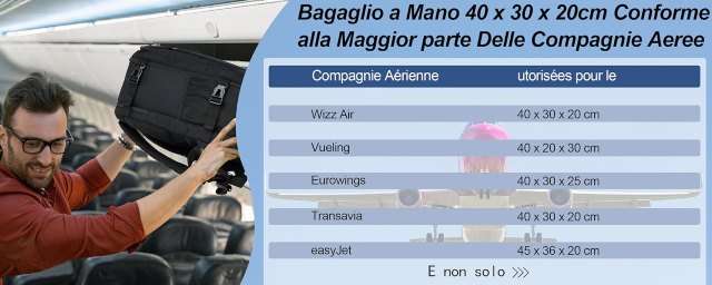 Le misure, 40x20x30, sono compatibili con le principali aeree low cost. Al prezzo di soli 26,04 euro ti risolvi un gran problema per i tuoi viaggi.