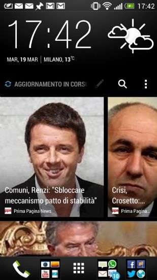 Una delle principali novità è rappresentata da HTC BlinkFeed, una pagina a scorrimento verticale completamente personalizzabile scegliendo contenuti di social network, news e feed che verranno costantemente aggiornati. Sulla parte alta di BlinkFeed troviamo l’orologio ed il meteo, con animazioni in classico stile HTC.
