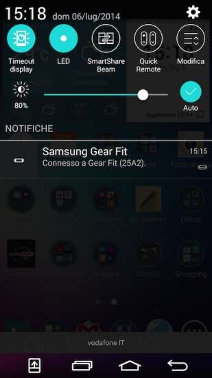 La tendina delle notifiche può mostrare gli slider per la regolazione del volume e della luminosità e l’accesso rapido a QuickMemo+, per prendere appunti sul display, alle app in finestra QSlide ed al Quick Remote per utilizzare il device come un telecomando ad infrarossi.