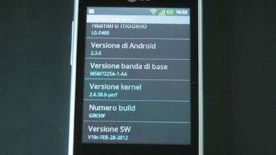 LG Optimus L3 non presenta alcuna brandizzazione, e offre il sistema operativo Android Gingerbread qui presente nella versione 2.3.6.