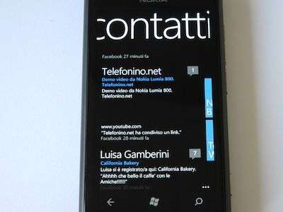 Il nuovo Lumia 800 è privo di brandizzazioni, e offre la versione 7.5 Mango di Windows Phone come sistema operativo. Si tratta di una release che ha migliorato il software di Microsoft, ma che lascia spazio nella home screen alle già incontrate tails, le piastrellone, che si riempiono di vita facendoci intuire la grande integrazione con social network e mondo esterno.