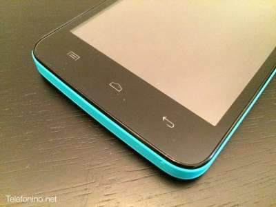 Sulla parte anteriore, protetta da un vetro antigraffio, ci sono una fotocamera da 2 megapixel, i sensori di luminosità e di prossimità, un LED di notifica ed i tre tasti funzione capacitivi con feed a vibrazione e retroilluminazione di cui non possiamo settare la durata.