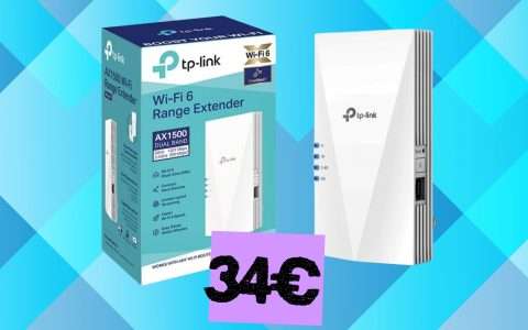 TP-Link RE705X WiFi 6 a 54,99€: ripetitore potente con AX3000Mbps, OneMesh e porta Gigabit in sconto del 21%
